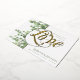 Elegante Goldfolienkalligraphie gepaart mit Aquarellfarben Eukalyptus-Blätter und klassischen Schriftart schafft eine faszinierende Hochzeitseinladung, die Ihre Gäste Liebe werden! Design ist auf einer horizontalen Karte für ein modernes, organisiertes und leicht lesbares Aussehen.