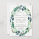 Modernes Design mit Aquarell Eukalyptus-grünen Blätter Kranz, Eukalyptusblätterspalte auf weißem Hintergrund; auf der Rückseite Initialen und Grünspalten. Verwenden Sie das Tool Personalisieren, um Ihre Informationen hinzuzufügen. Entsprechende Artikel finden Sie in meiner Sammlung von Lush Greenery.