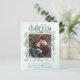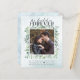 Diese elegante Eukalyptus Foto Verlobung-Budget-Karte auf billigerem Papier ist perfekt, um Ihre Familie und Freunde wissen, die glücklichen Nachrichten, bevor Sie ein Set zum Hochzeitstag haben. Aquarellgrüne Eukalyptussprigs umrahmen das Foto mit einer staubblauen Aquarellhintergrundstruktur und die Ankündigung "Wir haben uns auf den FROER geeinigt", zusammen mit den Namen des Ehepaares und Datum und Ort der Verlobung. Die Rückseite hat staubblauen Marmor. Wenn Sie Design-Hilfe benötigen oder passende Produkte oder andere Farbwege möchten, kontaktieren Sie mich bitte über Zazzle.