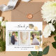 Fügen Sie 3 Ihrer eigenen Fotos und ein Dankeschön Ihre Notiz. Klassischer weißer Hintergrund mit schwarzem Text und Rahmen, goldener Eukalyptus-Srig. Der Text: Vielen Dank auf der Vorderseite und Ihre Namen auf der Rückseite sind mit einem stilvollen handgeschriebenen Skript mit Swashes geschrieben.
