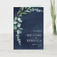 Eukalyptus-Foto-Collage QR-Code Navyblaue Hochzeit Einladung