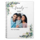 Personalisieren und fügen Sie Ihr eigenes Foto. Mit Eukalyptus und Imitaten mit goldenem Blattwerk dekoriert. Eleganter weißer Hintergrund. Geben Sie Ihren Familiennamen und das Jahr ein.