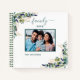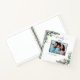 Personalisieren und fügen Sie Ihr eigenes Foto. Ein grüner Rahmen mit Eukalyptusgrün und Imitaten mit goldenem Blattwerk. Eleganter weißer Hintergrund. Geben Sie Ihren Familiennamen und das Jahr ein.