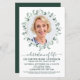 Moderne Eukalyptus Gedenkfeier / Feier des Lebens Einladung. Diese Beerdigungseinladungen mit Beileid sind mit einem Foto in einem eukalyptusgrünen Kranz-Design versehen. Personalisieren Sie diese Feier der Beerdigung des Lebens mit Ihren Lieben Fotos, Name & Daten, Veranstaltungsdetails. COPYRIGHT © 2021 Judy Burrows, Black Dog Art - Alle Rechte vorbehalten. Eukalyptus-Foto zum Feiern des Lebens