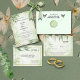 Deine Romantik ist immergrün. Diese lebhafte Hochzeitseinladung besticht durch einen Imitat-Metallrahmen mit gemalten Eukalyptus-Blätter in den Ecken über einem Aquarellhintergrund. Innerhalb des Rahmens werden Ihre Namen und Hochzeitsdetails in eleganten Schriftart angezeigt. Auf der Rückseite füllt Eukalyptus-Blätter den hellgrünen Bereich und schafft ein Gefühl der Ruhe und Kontinuität. Einige Bilder sind auch abnehmbar. Passen Sie Ihre persönlichen Daten an.