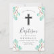 Eine luftige und lebendige Taufveranstaltung mit frisch keimenden Eukalyptuskeimen in Aquarellen rund um Ihre einzigartige Tauftages-Information. Auf der Rückseite ist eine lebendige Weise Farbe, um die Vorderseite zu ergänzen.