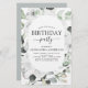 White Floral Rose und Eukalyptus Botanical Greenery Watercolor Spring or Summer Any Age Birthday Party Einladungen - beinhaltet eine wunderschöne und elegante Schrift Typografie mit modernen botanischen Blume und Grünpflanzen für die besondere 13., 15., 16., 18., 21., 30., 40., 50., 60. Geburtstagsfeier, 70., 80., 90. oder 100.