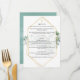 Wilde Waldwälder Eukalyptus-Herbarium Taufe Einladung mit goldenem geometrischem Rahmen.