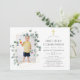 Trendy Aquarell Eukalyptus Silber Dollar erste kommunion Einladung mit goldenem geometrischem Rahmen. Es wird ein porträtförmiges Foto empfohlen.