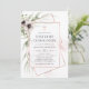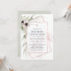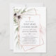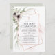 Erste heilige Kommunion Einladung mit anemonischen Blume und eukalyptus-Blätter in einer Rose goldene geometrische Rahmen.