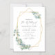 Die trendige geometrische Eukalyptus-grüne magnetische Hochzeit lädt mit goldenem geometrischem Rahmen ein.