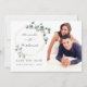 Trendy Aquarell Eukalyptus Silber Dollar Hochzeit speichern Sie das Datum Fotokarten mit goldenem geometrischem Rahmen.