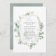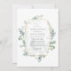 Wilde Waldwälder Eukalyptus-Herbarium Feier des Lebens Einladung mit goldenem geometrischem Rahmen und silberne Salbei Wasserfarbe rückwärts.