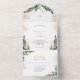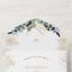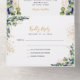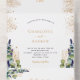 Ein weißer Hintergrund mit Eukalyptusgrün, goldenen Blätter und Imitaten, vergoldeter Glitzer fällt. Personalisieren und fügen Sie Ihre Namen, Monogramm und Hochzeitsdetails. Schwarze und goldfarbene Buchstaben.