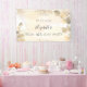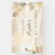 Ein Banner für eine mädchenhafte und glamouröse 50. Geburtstagsparty (oder jedes Alter). Ein goldfarbener goldfarbener Hintergrund mit Pinselstrichen und mit Imitaten Glitzer Staub. Mit goldenen Eukalyptus-Blätter dekoriert, Blattwerk. Personalisieren und fügen Sie ein Datum, Name und Alter 50. Perfekt sowohl als Begrüßungsbanner als auch als Party.