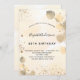 Für eine elegante 50. Geburtstagsfeier (oder jedes Alter). Ein goldfarbener Hintergrund mit goldenem Eukalyptus und Imitaten goldener Glitzer Staub. Personalisieren und einen Namen und Party Details. Schwarze Buchstaben. Zurück: goldfarbener Hintergrund