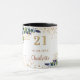 Für eine elegante 21. Geburtstagsparty (oder jedes Alter). Ein weißer Hintergrund. Auf der Vorderseite und auf der Rückseite: Personalisieren und fügen Sie einen Namen, Alter und ein Datum. Dekoriert mit Eukalyptusgrün und Imitaten Glitzer Staub.