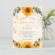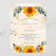 Weiß und goldfarben, mit Sonnenblumen, Eukalyptusgrün, goldenen Blätter und Imitaten mit goldenem Glitzer verziert. Personalisieren und fügen Sie Ihre Namen und Party-Details.