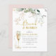 Schönheit und Spaß mit dieser Brunch & Bubbly Brautparty Champagner-Luncheon-Einladung entworfen mit whispy weichen Eukalyptus-Zweigen vergoldeten goldenen Blätter, und eine rot rosa Kulisse auf der Rückseite der Karte. Passen Sie einfach den Namen der Braut an und andere wichtige Informationen an.