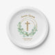 Eukalyptus Gold Cross Christening Pappteller
