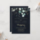 Diese Eukalyptus goldbläulich blühende Vorder- und Hinterzeitseinladung ist perfekt für eine rustikale Hochzeit. Dieses künstlerische Design zeigt handgezeichnet goldene Blüten- und Aquarellblütenblätterung in einem dunkelblauen Hintergrund und inspiriere die natürliche Schönheit. Rett Papier, indem man mehr Details auf der Rückseite der Einladung anstatt auf einer separaten Gehäusekarte angibt.