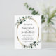 Eukalyptus Gold Metallic Oval Sage Einladung Hochzeit... An der Vorderseite unserer luxuriösen botanischen Hochzeitseinladung befindet sich ein ovaler goldgelber Rahmen aus Metall, der mit smaragdfarbenen Eukalyptus-Blätter auf einem knusprigen, weißen Hintergrund und einer zarten, hellen Salbeifarbe auf der Rückseite besticht. Alle Beispieltexte können mit eigenen Informationen über die Personalisierungsvorlage leicht überarbeitet werden.