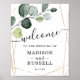 Aquarell eucalyptus gold geometrische Form Framing Skript "willkommen" und klassische Typografie für Hochzeitszeichen.