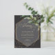 Budget Moderne elegante Eukalyptusgrün goldene geometrische Rahmen auf einem kontrastierenden schwarzen Kohle Hintergrund, Hochzeitseinladung.