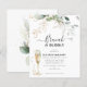Schönheit und Spaß mit dieser Brunch & Bubbly Brautparty Champagner-Luncheon-Einladung entworfen mit weich weichen Eukalyptuszweigen und vergoldeten goldenen Blätter. Passen Sie einfach den Namen der Braut an und andere wichtige Informationen an.