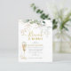 Schönheit und Spaß mit dieser Brunch & Bubbly Brautparty Champagner-Luncheon-Einladung entworfen mit weich weichen Eukalyptuszweigen und vergoldeten goldenen Blätter. Passen Sie einfach den Namen der Braut an und andere wichtige Informationen an.