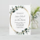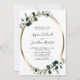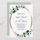 Elegante Eukalyptus Gold Metallische Oval Sage Einladung Hochzeit... Unsere luxuriöse, botanische Hochzeitseinladung im Grünen besticht durch einen ovalen goldgelben Rahmen aus Metall, der mit smaragdfarbenen Eukalyptus-Blätter auf einem knusprigen weißen Hintergrund vor der Karte geschmückt ist. Auf der Rückseite der Einladung befindet sich eine hübsche Salbeifarbe, die in den Blätter selbst angezeigt wird. Alle Beispieltexte können mit eigenen Informationen über die Personalisierungsvorlage leicht überarbeitet werden.