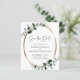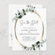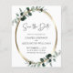 Eukalyptus Gold Metallic Wedding Sparen Sie das Datum der Einladung... Unsere luxuriöse botanische Save the Date-Karte verfügt über einen ovalen goldgelben Rahmen aus Metall, der mit staubigen grünen und smaragdfarbenen Eukalyptus-Blätter geschmückt ist und einen natürlichen Rahmen für den Ankündigungstext im Inneren schafft. Die Rückseite der Karte enthält Ihre Hochzeitswebsite-Informationen und eine QR-Code-grafische Vorlage können Sie durch Ihre eigene Code-Grafik ersetzen. Alle Beispieltexte können mit eigenen Angaben auf der Personalisierungsvorlage leicht überarbeitet werden.