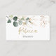 Elegante flache Platzkarte mit einer Darstellung von Eukalyptus- und Goldgold-Blätter im Aquarellstil. Aufgrund dieser Art von Karte ist es nicht möglich, Einzelnamen zu tun. In diesem Design können Sie den Beispielnamen (leere Karte) entfernen. Dann müsste man die einzelnen Namen von Hand schreiben.