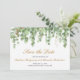 Frag deinen Freunden, um dein Hochzeitstag mit dieser schönen Hochzeit retten, speichern Sie das Datum Ankündigung Design mit Aquarell eucalyptus foliage mit eleganten goldenen Glitzer-Folie Akzente.