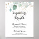 Dieses rustikale Eukalyptus goldene Signatur der Getränke ist perfekt für eine einfache Hochzeit. Dieses künstlerische Design zeigt handgezeichnet goldene Blüten und Aquarellen eucalyptus grünes Blattwerk, das die natürliche Schönheit inspiriere. Personalisieren Sie das Schild mit den Namen der Braut und des Bräutigams und ihrer Lieblingsgetränke Wahl.
