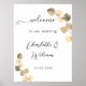Ein modernes, elegantes Begrüßungszeichen. Weißer Hintergrund, mit goldenem Eukalyptus dekoriert, mit Sprigs. Personalisieren und fügen Sie Ihre Namen und das Hochzeitstermin. Schwarze Buchstaben.