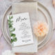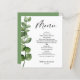Eukalyptus Flat Menu Card. Genießen Sie Ihr Hochzeitsessen mit unseren exquisiten Hochzeitsmenüs, die mit wunderschönen Eukalyptus-Blätter geschmückt sind. Diese Menükarten ergänzen Ihre elegante Affäre und fügen Ihren Empfang-Tischen eine Touch von Naturschönheit und Eleganz hinzu. Es stehen individuell anpassbare Optionen zur Verfügung, da es als Vorlage erstellt wird, sodass Sie die Menükarten mit Ihren Namen, Hochzeitstermin und einer Auswahl an phantastischen Geschirr personalisieren können. Lassen Sie sich von den kulinarischen Köstlichkeiten der Speisekarte verzaubern, die das Wesen der natürlichen Schönheit erfassen. Mit unseren Eukalyptus-geschmückten Hochzeitsmenükarten werden Sie sicher einen bleibenden Eindruck verlassen und wertvolle Erinnerungen Ihres besonderen Tages erschaffen. Für passende Artikel folgen Sie bitte dem Link: https://www.zazzle.com/collections/eucalyptus_green_symphony_g140-119861040570325510 oder schreiben Sie einfach G140 in das Suchfeld dieses Stores (Shop). Falls Sie Hilfe bei der Anpassung benötigen, können Sie sich jederzeit an den Shop wenden