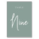 Eukalyptus Green Hand Scripted Table NINE Tischnummer