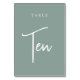 Einfache und schicke Tischnummer-Karten in Eukalyptus Grün und Weiß geben bei Ihrer Hochzeit oder Veranstaltung eine elegante Note. Das Design bietet "table [number]" in einem spannenden Mix aus klassischen Serifen und handgeschriebenen Skripten. Design wiederholt sich auf beiden Seiten. Einzelne nummerierte Karten werden separat verkauft; bestellen Sie jede Tischnummer einzeln aus unserer Sammlung.