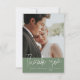 Fügen Sie Ihre Hochzeit Foto zu dieser eleganten Hochzeitskarte Dankeschön Karte. Bearbeiten Sie die Nachricht auf der Rückseite einfach und ändern Sie die Namen der Braut und des Bräutigams sowie die Einzelheiten der Hochzeit. Eukalyptus Green Wedding Foto Danke Karte.