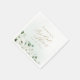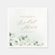 Moderne schicke Aquarellfarbe Eukalyptus Grüne und weiße Blumen auf staubigen grünen Hintergrund, mit goldfarbenem trendigem Brautparty-Skript, elegante und stilvolle, großartige Brautparty-Servietten für rustikale Hochzeit, botanische Hochzeit und Strandhochzeit im Frühjahr und Sommer. Alle passenden Teile in der Sammlung anzeigen