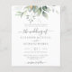 Schöne Hochzeitseinladung mit Aquarell Eukalyptus und goldenen Blätter. Ideal für Hochzeiten im Frühling und im Sommer.