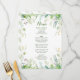 Dieses Hochzeitsmenü bietet botanische eukalyptus-Blätter im Grünen. Das ist perfekt für eine Sommerhochzeit im Frühjahr.