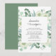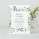 Diese elegante Hochzeitseinladung besticht durch eine weitläufige Vegetation, Eukalyptsie und Blume. Das Design wird durch handgeschriebenen Stiltext für die Namen der Braut und des Bräutigams hervorgehoben.