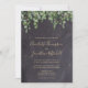 Mit dieser rustikalen Tafelplatte mit Eukalyptus laden Sie Ihre Freunde und Familie zu einer Hochzeit ein, elegante, aber lässige Einladungen. Personalisieren Sie mit Namen, Hochzeitstag, Ort und anderen Informationen. Diese einmaligen Grün-Hochzeitseinladungen werden einen bleibenden Eindruck hinterlassen. COPYRIGHT © 2020 Judy Burrows, Black Dog Art - Alle Rechte vorbehalten. Eukalyptus Greeneria Rustic Chalkboard Einladung Hochzeit