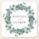 Elegante botanische Untersetzer mit einem Kranz aus handgemalten, staubgrünen Eukalyptus und Blattwerk mit weißem Hintergrund. Personalisieren Sie die Eukalyptuspapiere, indem Sie Ihre Namen hinzufügen. Entworfen, um mit unserer modernen Eukalyptus Greenery Hochzeitskollektion zu koordinieren.