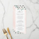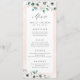 Moderne schicke Aquarellfarbe Eukalyptus Grün und Anemone Blumen auf rot rosa Hintergrund, mit trendiger Menüschrift, elegante und stilvolle, großartige Hochzeitsmenüs für rustikale Hochzeiten, botanische Hochzeiten und Hochzeiten am Strand im Frühling und Sommer. Alle passenden Teile in der Sammlung anzeigen
