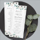 Moderne schicke Aquarellfarbe Eukalyptus Grün und Anemone Blumen auf hellgrauem Hintergrund, mit trendigem Drehbuch, eleganten und stilvollen, großartigen Hochzeitsprogrammen für rustikale Hochzeiten, botanische Hochzeiten und Hochzeiten am Strand. Alle passenden Teile in der Sammlung anzeigen