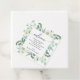 Dieses elegante Hochzeitsgetränk mit Goodie-Taschentag besticht durch einen quadratischen Rahmen aus üppiger Vegetation, Eukalyptus und Blume. Individueller Text erlaubt es Ihnen, eine Danksagung an Ihre Hochzeitsgäste außerhalb der Stadt zu personalisieren.