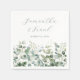 Eukalyptus und grüne Blätter grenzen an die Hochzeitsfeier Cocktail-Servietten. Die Farbe des Schriftartes ist eine grüne Farbe, die dem Design entspricht... aber Sie können die Farben und den Schriftart-Stil anpassen. Wenn Sie dieses Design übertragen, können Sie die Größe des Schriftartes so ändern, dass es mit einem anderen Produkt übereinstimmt. Sie können auch den Wortlaut der Typografie-Design ändern.
